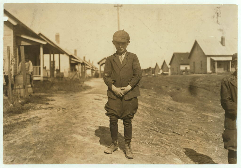 An unnamed boy, eleven years old, works as a sweeper at the Loray Mill in 1908. Credit: National Child Labor Committee collection, Library of Congress, Prints and Photographs Division.