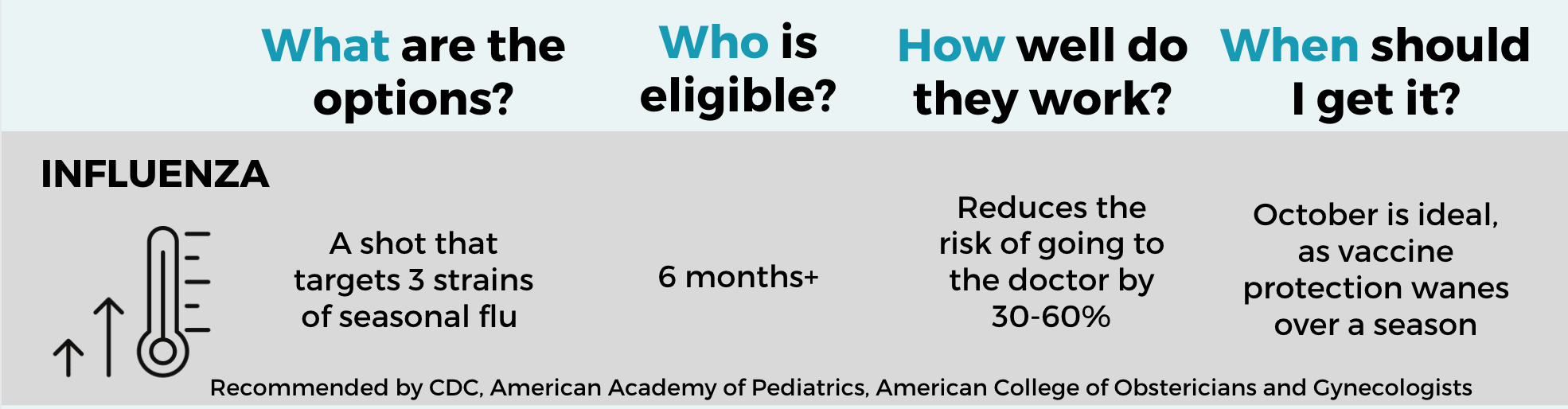 Vaccines are one of the best things you can do this fall and winter to stay healthy and minimize disruption. As always, for specific questions or guidance, be sure to talk with your healthcare provider.