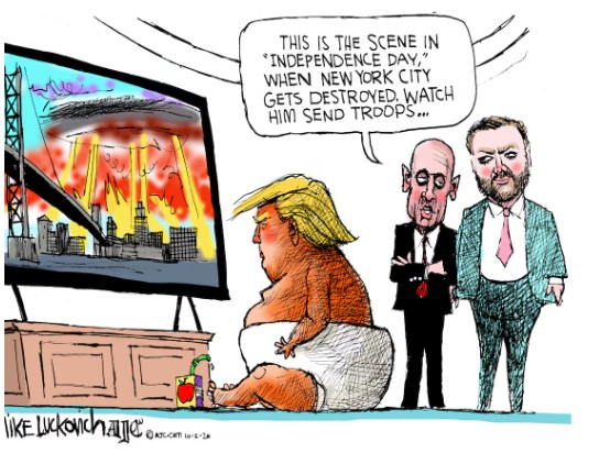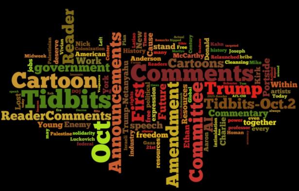 Tidbits- Oct. 2 -Readers Comments: “Enemy From Within”; Trump-Netanyahu Colonization Plan; Lost Cause in the 21st Century – Charlie Kirk and Donald Trump; Committee for the First Amendment Relaunched; AI and the Future of Work; Cartoons and More…