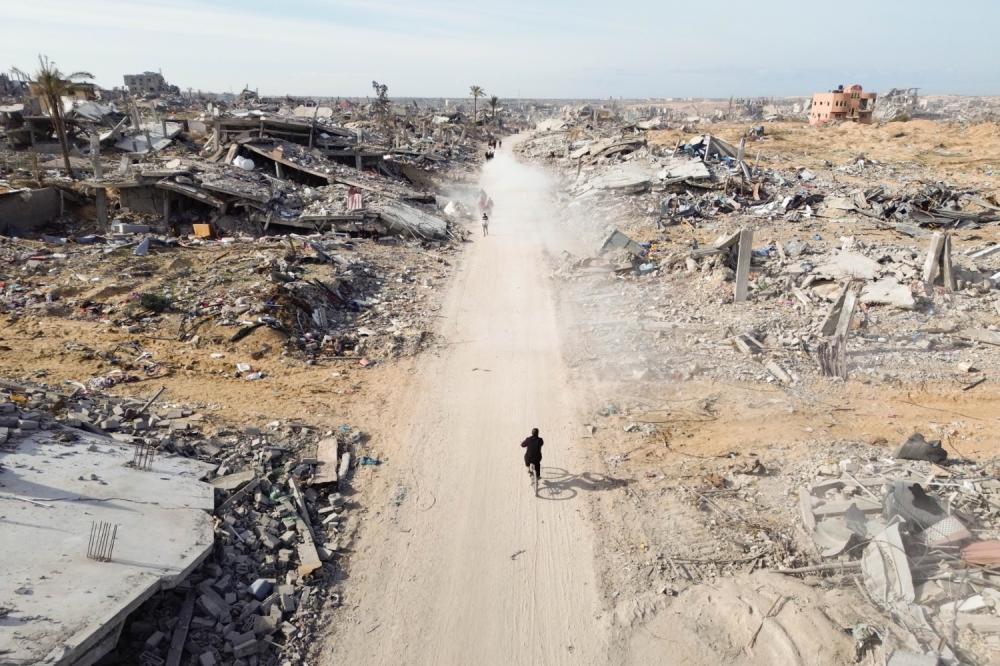 An aerial view of destroyed residential buildings in the Tel Al-Sultan neighborhood, following the withdrawal of the Israeli army during a ceasefire, Rafah, southern Gaza Strip, January 19, 2025. (Ali Hassan/Flash90)