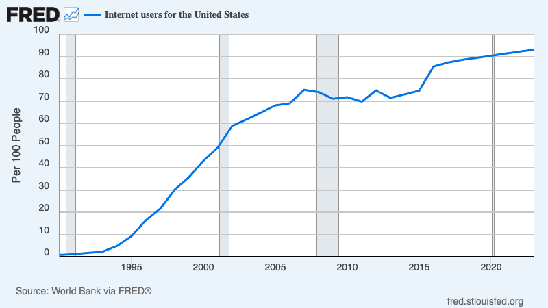 Why do such stories seem more widespread than in the past? Well, the internet isn’t the only source of network effects, but it does make them more likely. And the internet only really became pervasive during the 2000s: