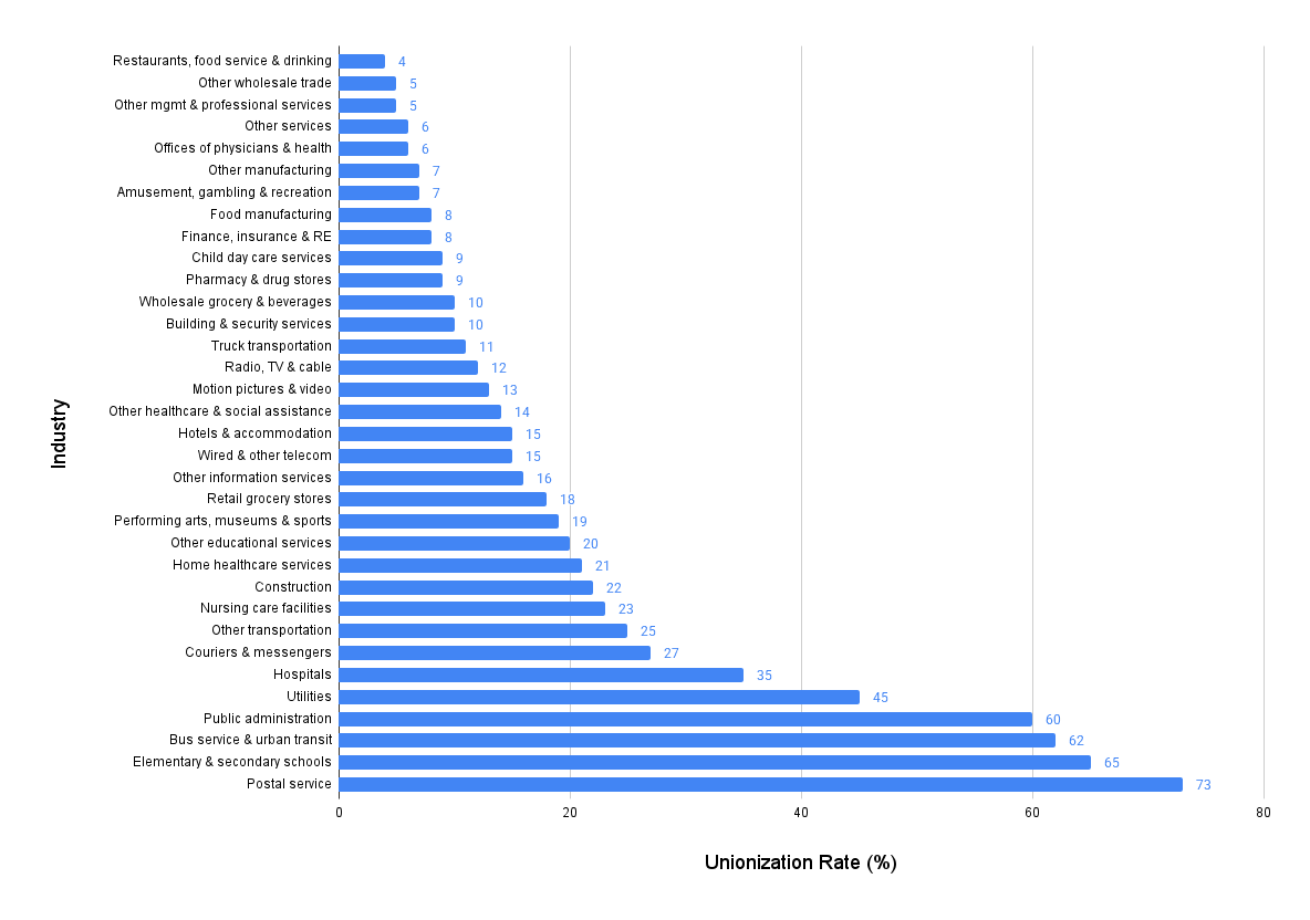 Figure 1: NYC Unionization Rate By Industry (2023-24)